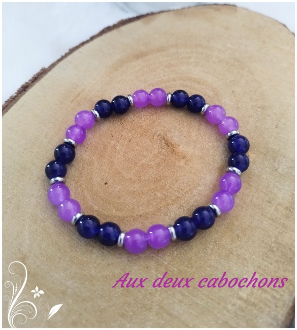 Ajoutez une touche de couleur et d'élégance à votre poignet avec ce bracelet artisanal composé de perles de 8 mm en dégradé violet et mauve. Chaque perle est séparée par un petit intercalaire argenté pour un rendu harmonieux et raffiné.