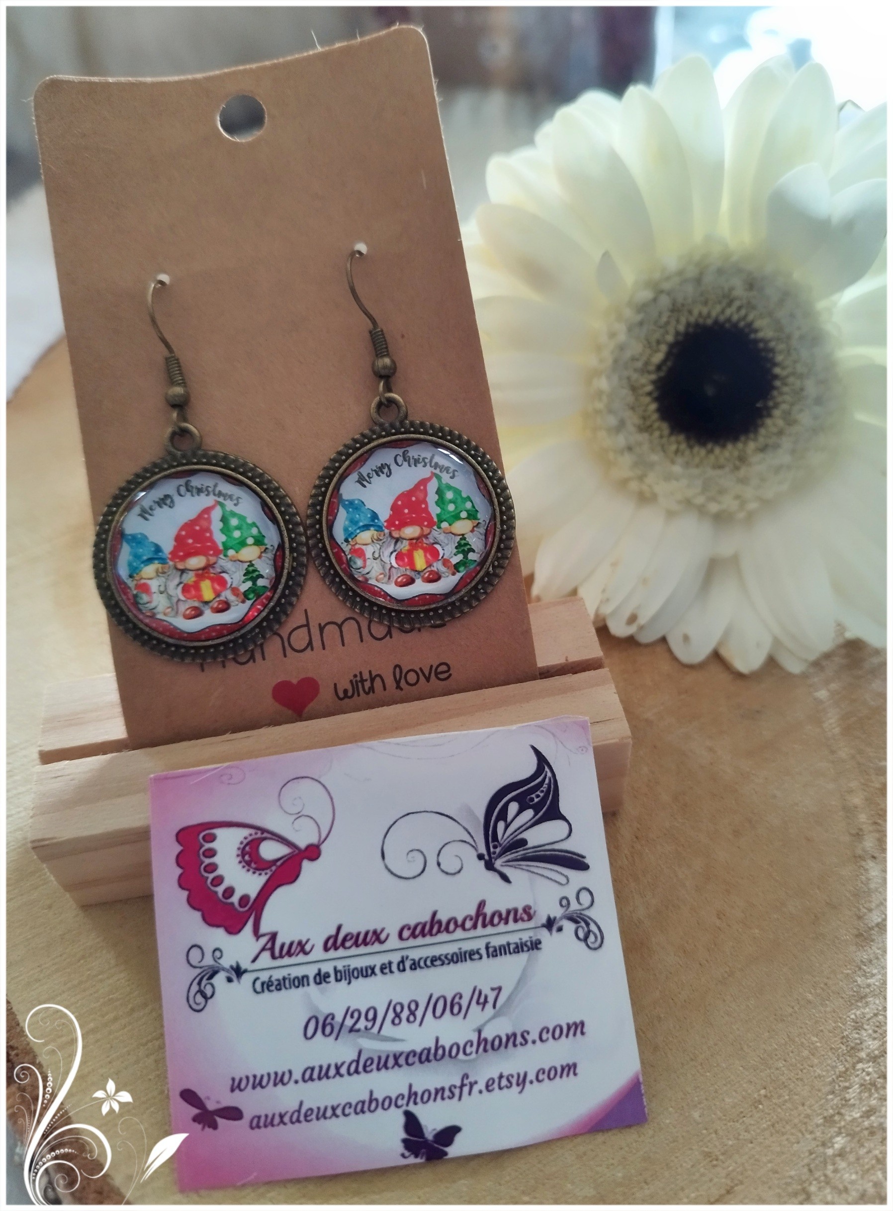 🎄 Boucles d’oreilles pendantes Noël – Lutins 🎄